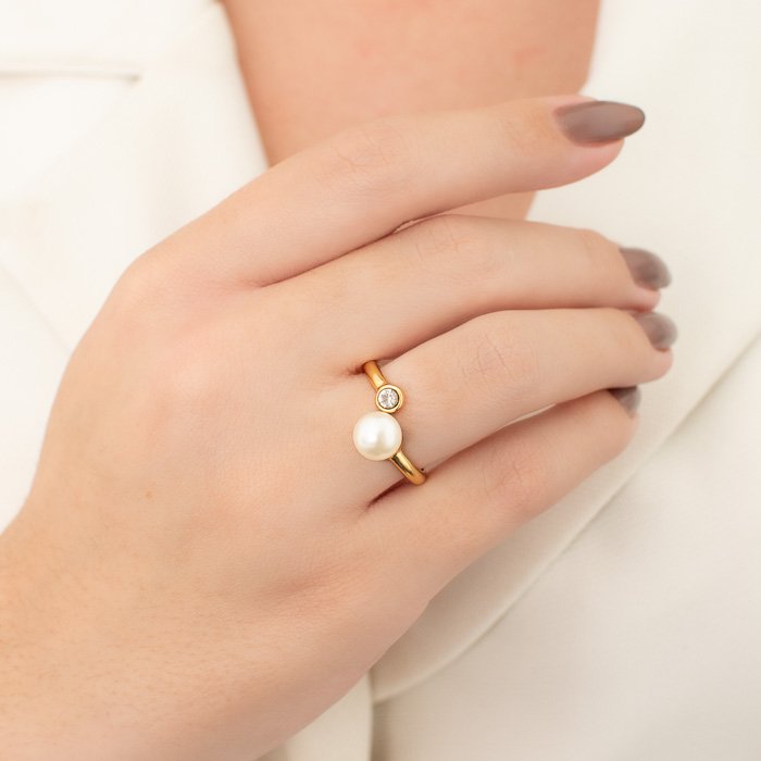 ANEL REGULÁVEL PÉROLA E ZIRCÔNIA NAS PONTAS