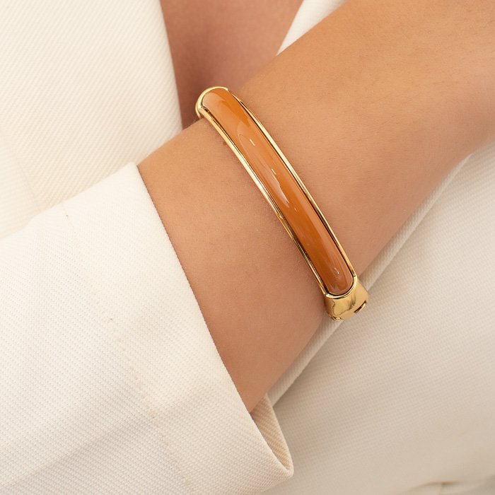 Com um traço moderno e acabamento delicado, este bracelete é pensado para mulheres que valorizam elegância em cada detalhe. Seu visual refinado permite combinações versáteis, desde o casual sofisticado até eventos luxuosos.