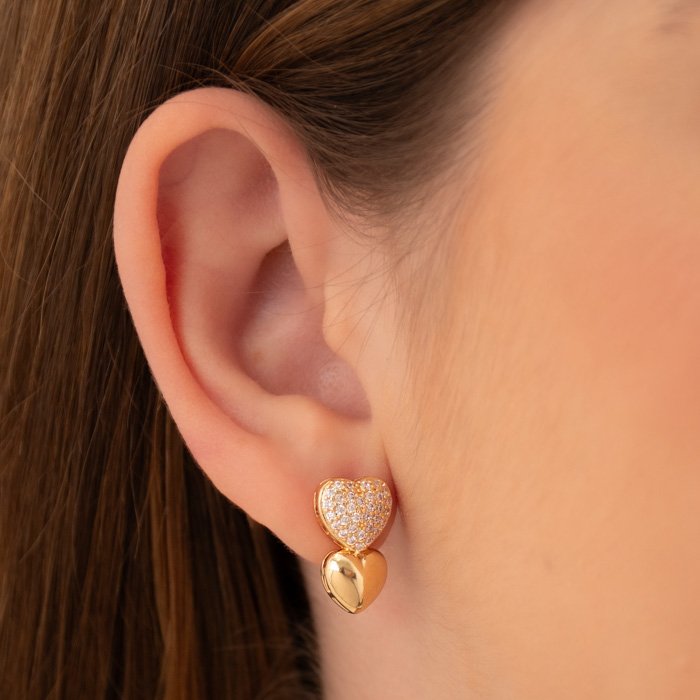 BRINCO CORAÇÃO CRAVEJADO E LISO - Sofisticação e Versatilidade em Uma Peça AtemporalUma joia que combina requinte e modernidade. Com um design minimalista e acabamento impecável, este acessório se destaca pela elegância e adaptabilidade a diferentes ocasiões. Ideal para mulheres que valorizam qualidade e exclusividade em cada detalhe.