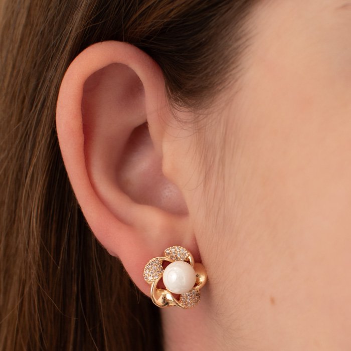 BRINCO FLOR PÉTALAS FIO TORCIDO LISO/CRAVEJADO MIOLO PÉROLA - Sofisticação e Versatilidade em Uma Peça AtemporalUma joia que combina requinte e modernidade. Com um design minimalista e acabamento impecável, este acessório se destaca pela elegância e adaptabilidade a diferentes ocasiões. Ideal para mulheres que valorizam qualidade e exclusividade em cada detalhe.