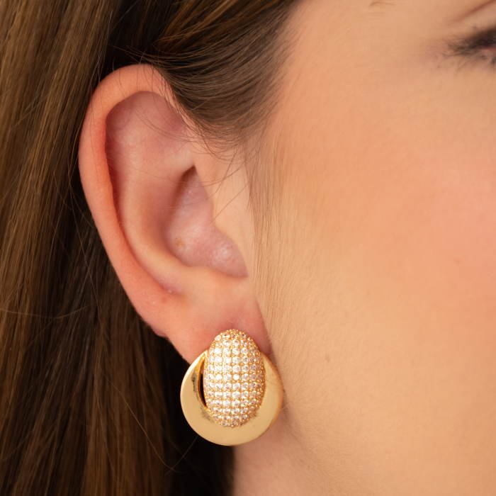 BRINCO OVAL CRAVEJADO COM SEMI-CÍRCULO LISO - Sofisticação e Versatilidade em Uma Peça AtemporalUma joia que combina requinte e modernidade. Com um design minimalista e acabamento impecável, este acessório se destaca pela elegância e adaptabilidade a diferentes ocasiões. Ideal para mulheres que valorizam qualidade e exclusividade em cada detalhe.