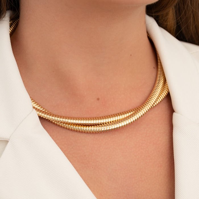 O modelo mais procurado por quem busca um colar curto e estiloso. Com brilho intenso e ajuste perfeito ao pescoço, essa peça se destaca pela sua versatilidade e sofisticação, ideal para diversas ocasiões.