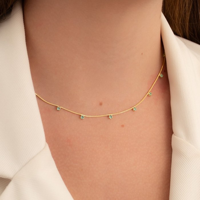 CHOKER DOURADA DEZ ZIRCÔNIAS ACQUA MARINE NA VENEZIANA - O Toque de Sofisticação Que Transforma Seu EstiloUma joia delicada e sofisticada, perfeita para mulheres que desejam um acessório versátil e cheio de elegância. Com um acabamento impecável e design refinado, essa peça é indispensável para qualquer coleção.