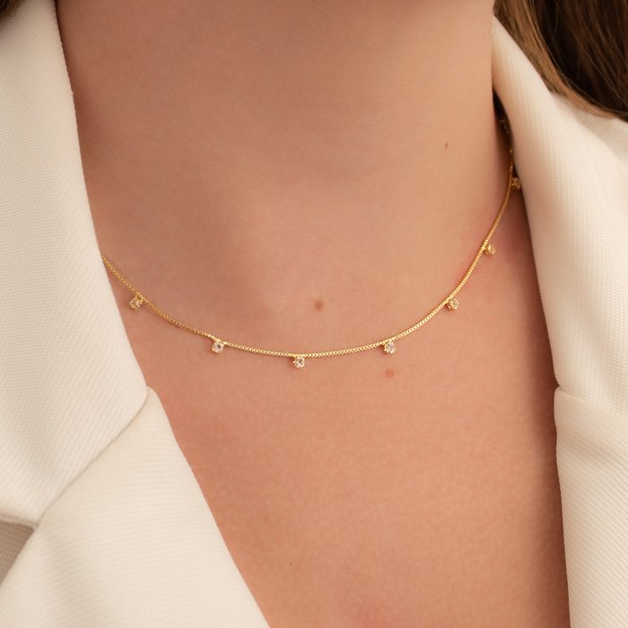 CHOKER DOURADA DEZ ZIRCÔNIAS NA VENEZIANA - O Toque de Sofisticação Que Transforma Seu EstiloUma joia delicada e sofisticada, perfeita para mulheres que desejam um acessório versátil e cheio de elegância. Com um acabamento impecável e design refinado, essa peça é indispensável para qualquer coleção.