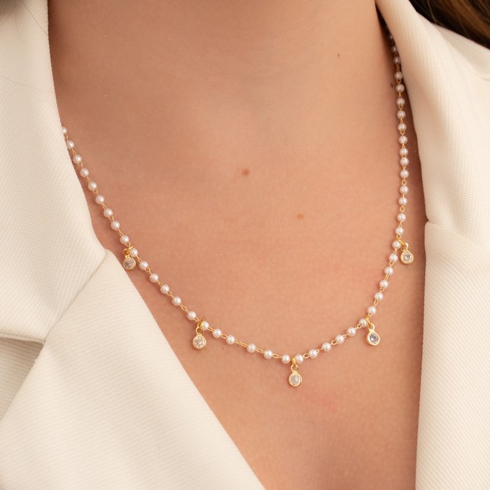 CHOKER PÉROLA COM CINCO ZIRCÔNIAS - O Toque de Sofisticação Que Transforma Seu EstiloUma joia delicada e sofisticada, perfeita para mulheres que desejam um acessório versátil e cheio de elegância. Com um acabamento impecável e design refinado, essa peça é indispensável para qualquer coleção.