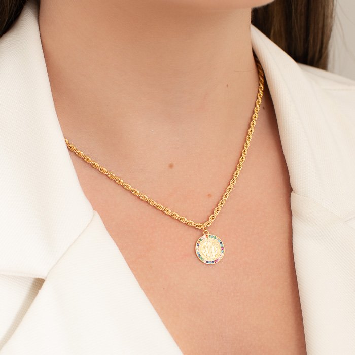 COLAR BAIANO COM MEDALHA DE SÃO BENTO CRAVEJADA COLORIDA - O Toque de Sofisticação Que Transforma Seu EstiloUma joia delicada e sofisticada, perfeita para mulheres que desejam um acessório versátil e cheio de elegância. Com um acabamento impecável e design refinado, essa peça é indispensável para qualquer coleção.