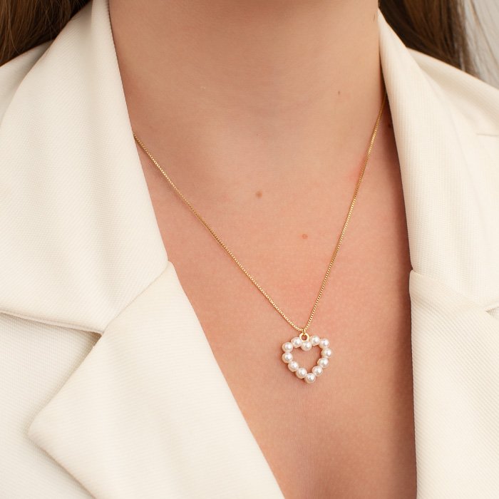 COLAR CORAÇÃO VAZADO DE PÉROLAS NA VENEZIANA - Sofisticação e Brilho para Todos os MomentosUma joia delicada e refinada, ideal para mulheres que desejam um toque de elegância e exclusividade. Seu design clássico e acabamento impecável tornam esse acessório indispensável para qualquer ocasião.