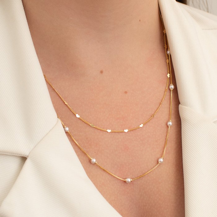 COLAR FEMININO DUPLO CORRENTE CORAÇÃO E VENEZIANA COM PÉROLAS - Sofisticação e Brilho para Todos os MomentosUma joia delicada e refinada, ideal para mulheres que desejam um toque de elegância e exclusividade. Seu design clássico e acabamento impecável tornam esse acessório indispensável para qualquer ocasião.
