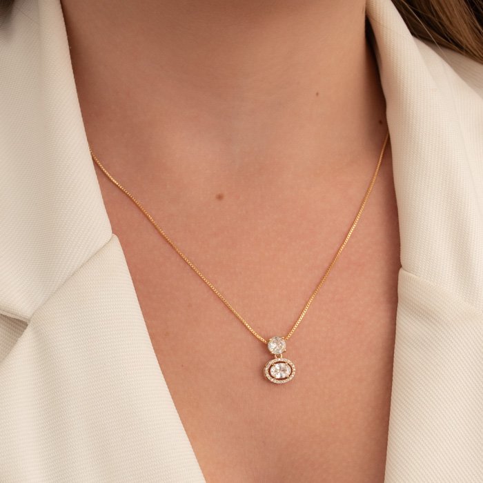 COLAR FEMININO ZIRCÔNIAS REDONDA E OVAL CRAVEJADA NA VENEZIANA - Sofisticação e Brilho para Todos os MomentosUma joia delicada e refinada, ideal para mulheres que desejam um toque de elegância e exclusividade. Seu design clássico e acabamento impecável tornam esse acessório indispensável para qualquer ocasião.