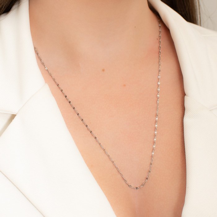 COLAR LONGO ELOS AMASSADOS AÇO INOXIDÁVEL - Sofisticação e Brilho para Todos os MomentosElegante, resistente e com brilho duradouro, o Colar Longo em Aço Inox é ideal para quem busca estilo e praticidade em uma única peça. Seu design versátil e acabamento impecável tornam esse colar indispensável para composições modernas e marcantes — seja no dia a dia ou em ocasiões especiais.