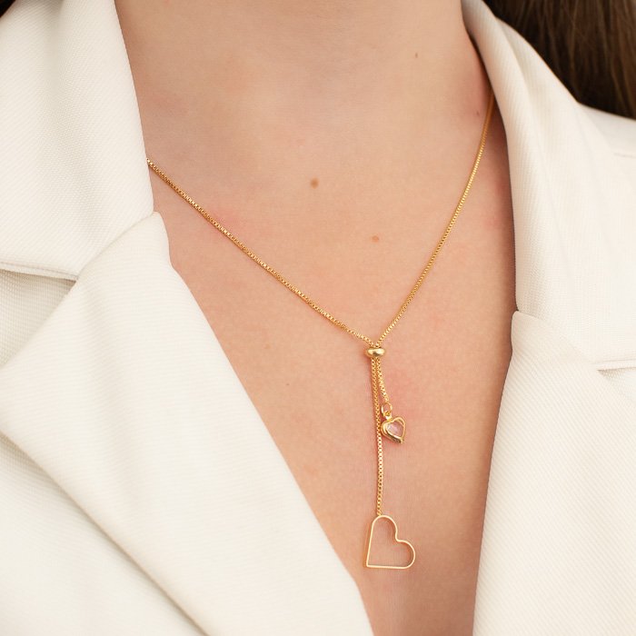 COLAR LONGO GRAVATA C/ CORAÇÃO VAZADO E DE ZIRCÔNIA NA PONTA – Sofisticação e Brilho para Todos os MomentosUma joia delicada e refinada, ideal para mulheres que desejam um toque de elegância e exclusividade. Seu design clássico e acabamento impecável tornam esse colar longo indispensável para qualquer ocasião.