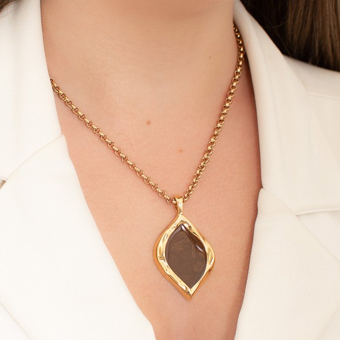• Modelo atual que pode ser usado sozinho ou em composições com colares longos.
