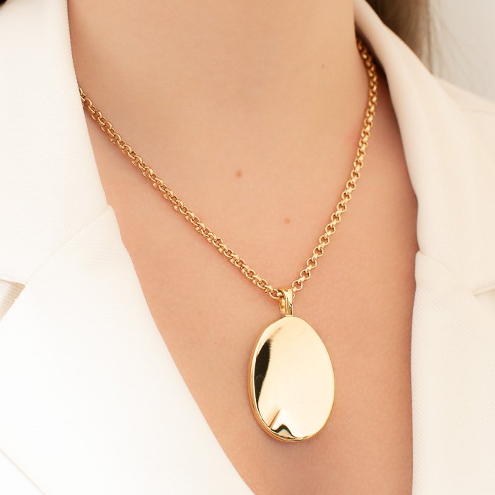 • Modelo atual que pode ser usado sozinho ou em composições com colares longos.
