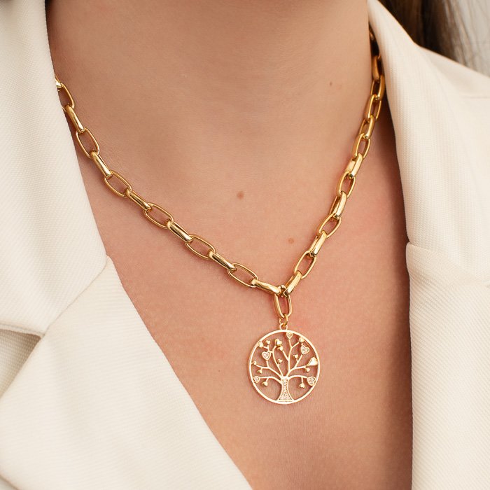 CORRENTE FEMININA ELOS OVAIS FIO QUADRADO COM ÁRVORE DA VIDA – O Toque de Sofisticação Que Transforma Seu EstiloUma joia delicada e sofisticada, perfeita para mulheres que desejam um acessório versátil com personalidade. Com design refinado e acabamento impecável, a choker corrente é indispensável para qualquer coleção de semijoias de alto padrão.