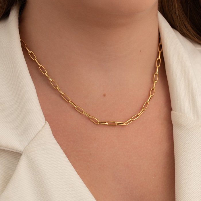 CORRENTE FEMININA ELOS OVAIS PEQUENOS– O Toque de Sofisticação Que Transforma Seu EstiloUma joia delicada e sofisticada, perfeita para mulheres que desejam um acessório versátil com personalidade. Com design refinado e acabamento impecável, a choker corrente é indispensável para qualquer coleção de semijoias de alto padrão.