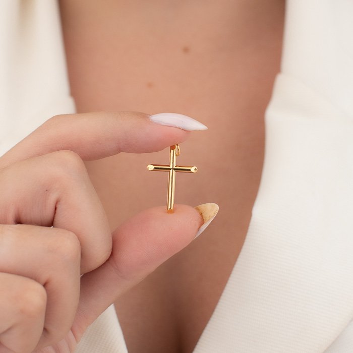 PINGENTE CRUZ PONTAS ACHATADAS – Sofisticação e Versatilidade em Uma Peça AtemporalUma joia que combina requinte e modernidade. Com um design minimalista e acabamento impecável, este pingente se destaca pela elegância e adaptabilidade a diferentes ocasiões. Ideal para mulheres que valorizam qualidade e exclusividade em cada detalhe.