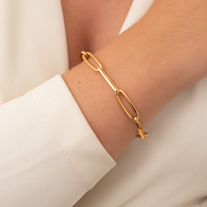 PULSEIRA FEMININA ELOS OVAIS FINOS - Elegância e Sofisticação para Todos os MomentosUma peça sofisticada e versátil, criada para mulheres que apreciam acessórios finos com design moderno. Seu acabamento impecável e brilho duradouro fazem dessa pulseira um item essencial para quem busca estilo e exclusividade.