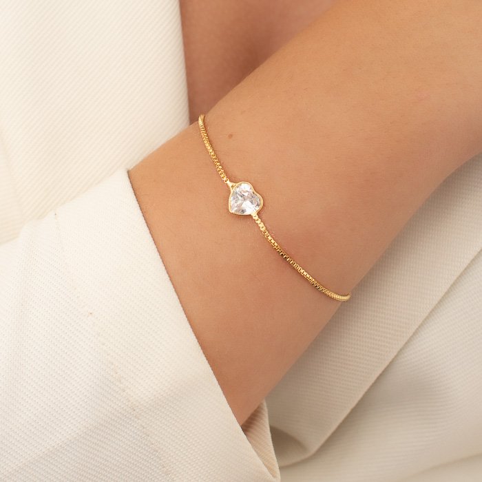 PULSEIRA FEMININA REGULÁVEL COM CORAÇÃO DE ZIRCÔNIA - Elegância e Sofisticação para Todos os MomentosUma peça sofisticada e versátil, criada para mulheres que apreciam acessórios finos com design moderno. Seu acabamento impecável e brilho duradouro fazem dessa pulseira um item essencial para quem busca estilo e exclusividade.