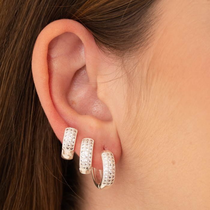 TRIO DE BRINCOS ARGOLA ARTICULADA CRAVEJADA COM TRÊS CARREIRAS - Sofisticação e Versatilidade em Um Trio Atemporal em PrataUma joia que combina requinte e modernidade. Com design minimalista e acabamento impecável, este trio de brincos em prata se destaca pela elegância e adaptabilidade a diferentes ocasiões. Ideal para mulheres que valorizam qualidade, versatilidade e exclusividade em cada detalhe.